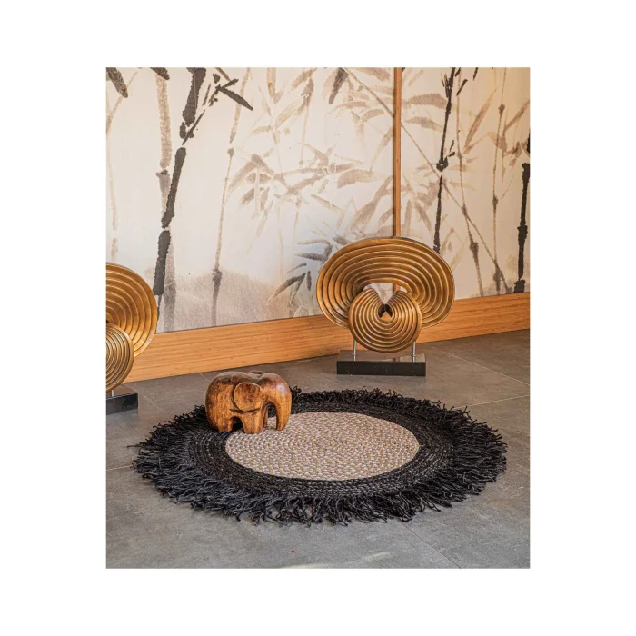NATURA JÜT Hindistan'da doğal jüt liflerinden el tezgâhında üretilmiştir. Jüt halılar hemen her tarz dekorasyona yakışan, doğal iplikten üretilen, el dokuması, özel halılardır. Geri dönüştürülebilir, ekolojik dengeye zararı yoktur ve çevre dostudur. Dayanıklıdır ve zamandan, akımlardan ve trend aşınmalarından etkilenmez. Dairesel formu mekana hareket katar, orta kısmında doğal jüt rengi bir daire ve etrafında siyah jütten kalın bir halka ve saçaklar bulunmaktadır. 150 cm, 120 cm ve 90 cm gibi ebat seçenekleri mevcuttur. Natura Halı, her türlü dekoru tamamlayan minimal, modern düz dokuma tasarımına sahiptir. Hem iç hem de dış mekan kullanımına uygundur, UV ışınlarına dayanıklıdır, neme ve küflenmeye karşı dayanıklıdır, temizlenmesi ve bakımı kolaydır. Yaşam alanlarında dekorasyon, konfor ve şıklık arayanlar için ideal. Dış mekanlar, bahçeler ve dayanıklı ve şık zemin kaplamalarına ihtiyaç duyduğunuz her alan için mükemmeldir. Halı, sakin ve doğal tonuyla her ortama kusursuz bir şekilde uyum sağlar. Zarif ve şık bir ortam yaratarak minimalist ve modern görünümüyle mekanınızı güzelleştirin. Bitkilerin doğal halleri gereği, bazı noktalarında renk farklılıkları, renk geçişleri, lekeler ve bitkinin gövdesinde var olan çeşitli farklılıklar ürüne de olduğu gibi yansımaktadır. Yine el yapımı ürünlerin, ölçülendirilmesinde kaçınılmaz olarak çok küçük ölçülerde artı/eksi farklar söz konusu olabilir. Nemli bir bez ile silinmelidir. Not: Aydınlatma ve monitör ayarlarına bağlı olarak gerçek renkler farklılık gösterebilir