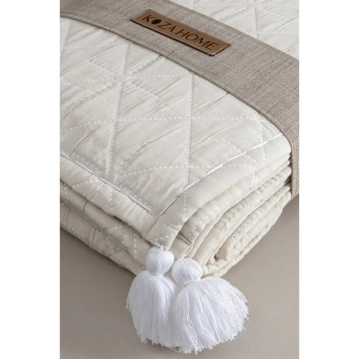 Yumuşak dokulu pamuk kumaşı ve baklava desenli dikiş detaylarıyla öne çıkar. 1 adet Yatak Örtüsü (230x250) ve 2 adet Yastık Kılıfı (50x70 ) ile ortamlarınız için tam bir uyum sağlar. Yumuşak ve konforlu bir kullanım sunar, pamuğun rahatlığı ile dinlendirir. Çoban dikiş kenarları tasarımı şıklık katarken, farklı yaşam alanlarında rahatlıkla kullanılabilir. Yatak odalarınızı düzenli ve şık bir şekilde tamamlar, yatağınıza zarif bir hava katar. Fonksiyonel yapısı sayesinde yatak odası dışında oturma odası gibi farklı alanlarda da örtü olarak kullanılabilir. Yatak, baza üzerinde kullanım sağlayabilirsiniz. Yatak örtüsünü mutlaka çamaşır makinasında 30° 'de yıkayınız. Ağartıcı ve ağartıcı özellikli deterjan kullanmayınız. Kumaşın kalitesini korumak için çamaşır suyu veya alkol gibi sert kimyasallarla yıkamaktan kaçının. Sererek kurutma tavsiye edilir. Kurutma işlemi sırasında, olası kumaş hasarlarını önlemek için doğrudan güneş ışığına maruz kalmayı önleyin. Not: Aydınlatma ve monitör ayarlarına bağlı olarak gerçek renkler farklılık gösterebilir.