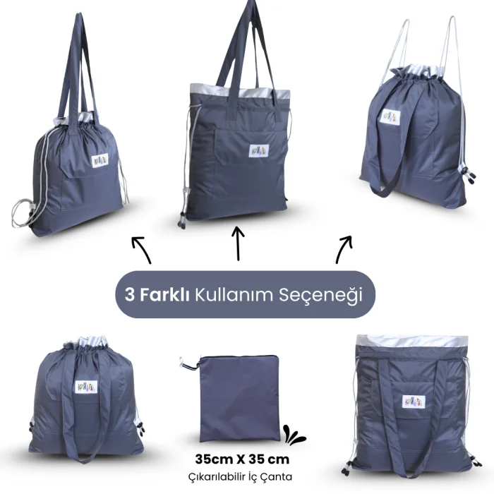 Çok amaçlı çantamız %100 su geçirmez özel kumaşı sayesinde ıslak bez, kıyafet, mayo vs eşyalarınızı rahatlıkla taşıyabilirsiniz.