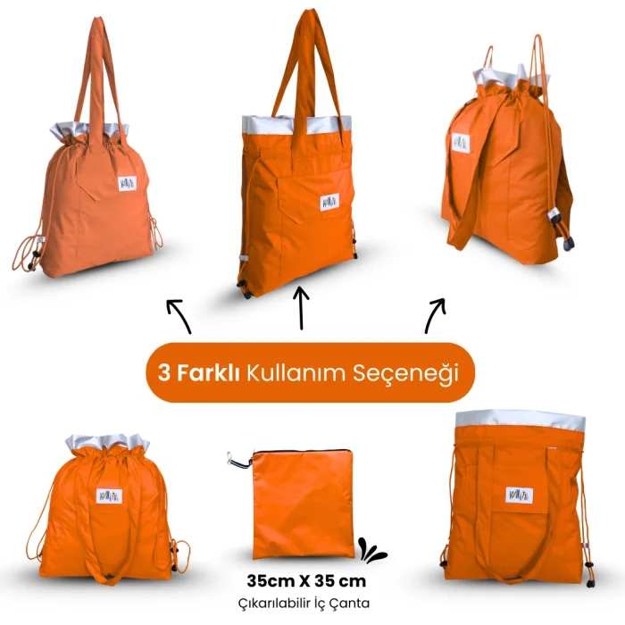 Çok amaçlı çantamız %100 su geçirmez özel kumaşı sayesinde ıslak bez, kıyafet, mayo vs eşyalarınızı rahatlıkla taşıyabilirsiniz.