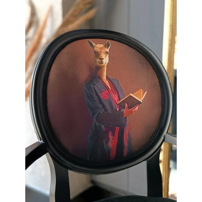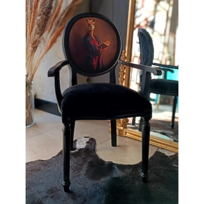 Malzeme: Madalyon Sandalye, ince dokuma kadife kumaş ve mat siyah cila