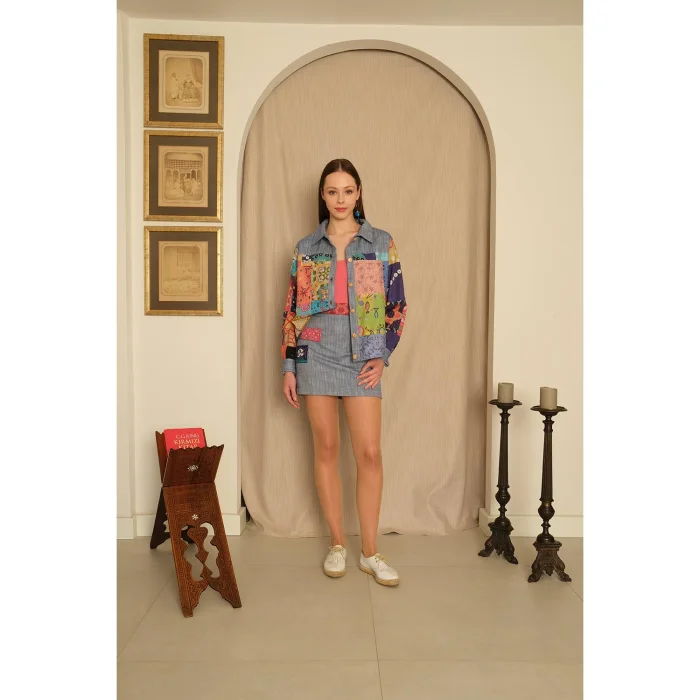 *Desenler, Sanatçı Defne Camcıoğlu’nun eserlerinden oluşturulmuştur, *Viskon karışımlıdır, astarlıdır, *Ürün, dökümlü ve yumuşak dokulu viskon karışımlı kumaştan üretilmiştir, *Gömlek yaka ve düğme detaylı olan ceket patch birleşimleri ile şık bir görünüm sunmkatadır. BAKIM ÖNERİLERİ: 30 derecede yıkama yapılabilir, Ağartıcı kullanılamaz, Makinede kurutmayınız. BEDEN ÖLÇÜLERİ S: GÖĞÜS:54 BOY: 54 M: GÖĞÜS:56 BOY: 54