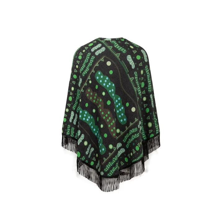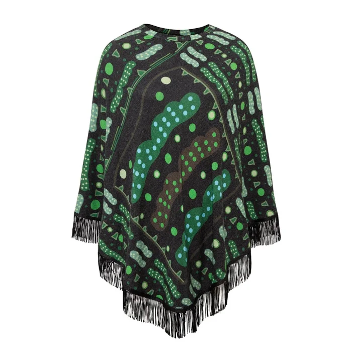 Ürün: Bulut Desenli Saçak Detaylı Panço