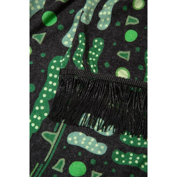 *Desenler sanatçı Defne Camcıoğlu'nun resimlerden oluşmuştur, *%82 Viskon, %13 Akrilik, %5 Elastan içeren örme bir kumaştır, *Kumaş fırçalı/tüylü sıcak bir tuşeye sahiptir, *Desenler dijital baskı yöntemi ile basılmıştır, *Ürün esnek likralı kumaş yapısı sebebi ile tek beden olarak belirlenmiştir,bir çok forma uyum sağlamaktadır, *Bisiklet yaka olan ve panço silüetinde olan bluz ucunda bulunan saçak detayları ile şık bir görünüm sunmaktadır.