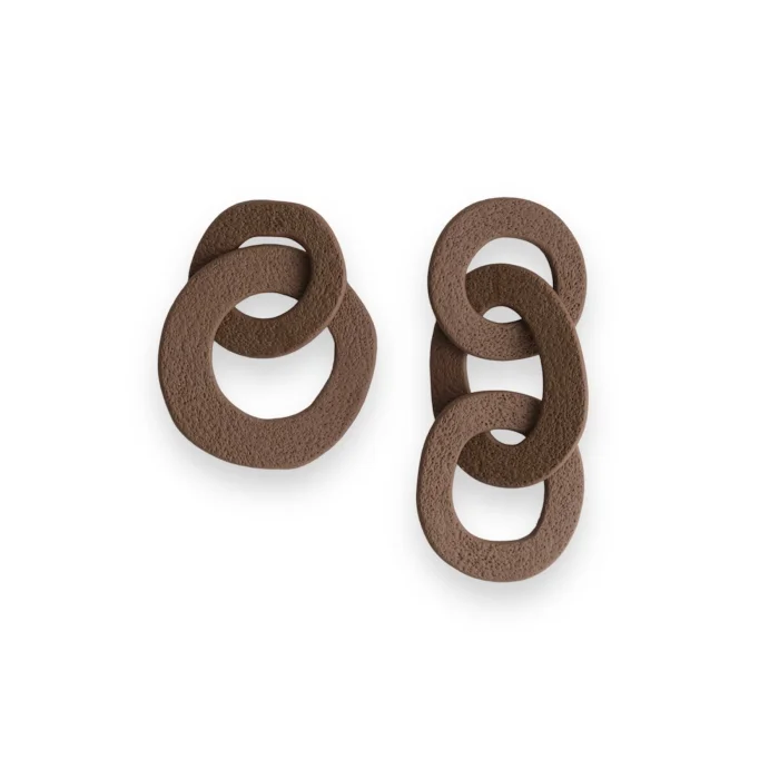 Polimer kil çift küpeAsimetrik tasarlanmıştır.İğnesi çelikten üretilmiştir.Uzunluğu (kısa ve uzun tarafı olmak üzere) 6-8 cm arasında olup elle şekil verildiği için ufak değişiklikler gösterebilir.Oldukça hafif bir materyaldir. Kulakta ağırlık yapmaz.Su, parfüm vb. ile temasından kaçınınız.