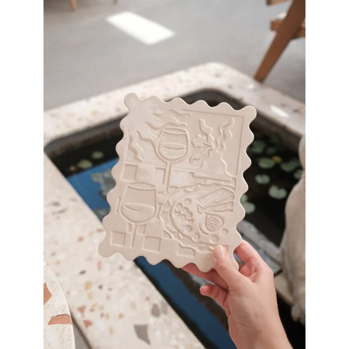 İki kişilik küçük sofraların samimiyetinden ilhamla, el yapımı seramik tablolar.