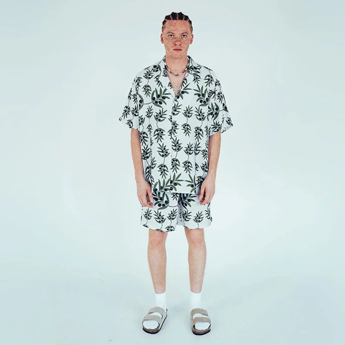 Unisex kısa kollu hür yaka, elle çizilmiş zeytin dalı desenli gömlek, yeşil CO-ORD renkte klasik oversize kesim. Ana Kumaş: %100 PAMUK Makinede Yıkama 30 °C Kurutucuda Kurutmayın. Ters çevirerek yıkayın. Benzer renklerle yıkayın.