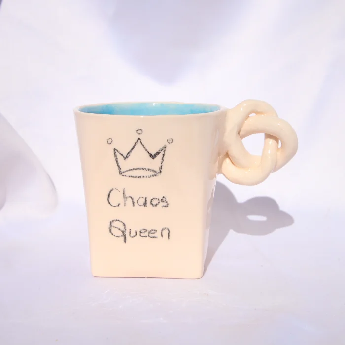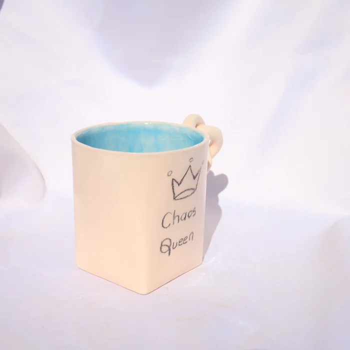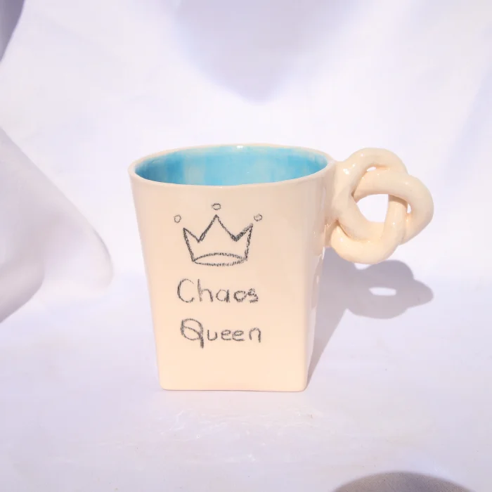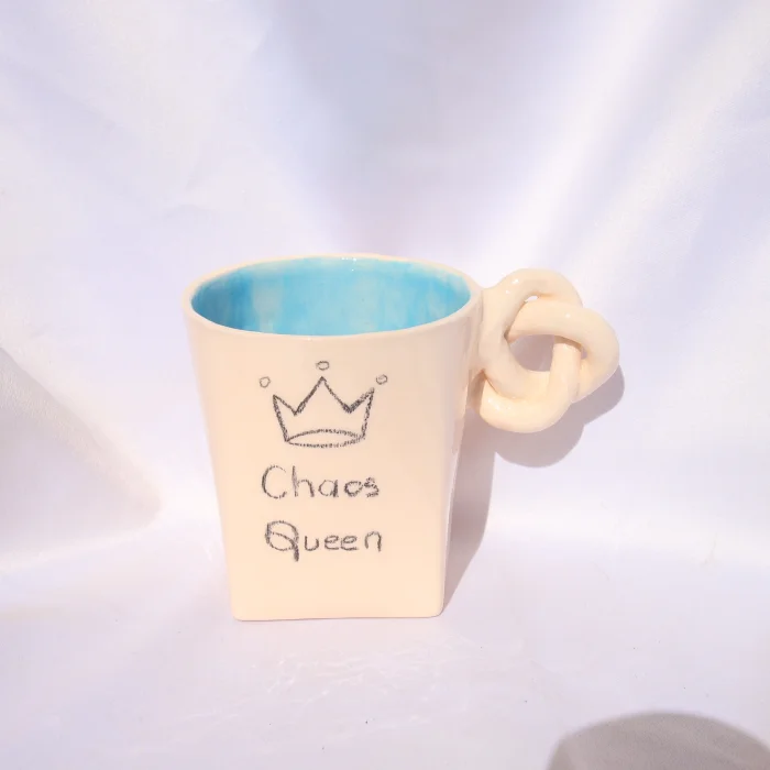 Ürün: El Yapımı Seramik "chaos Queen" Yazılı El Çizimli Düğüm Kulplu Kupa