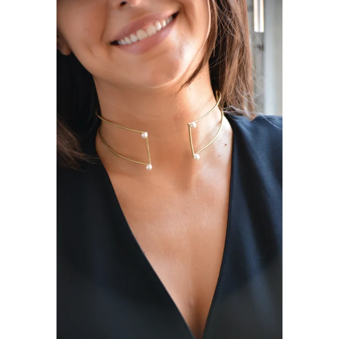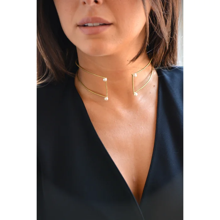 İnci Choker Özellikler: 925 ayar gümüş 22K Altın kaplama Kolye Rengi: Gold Ölçü: 11cm x 11cm Gerçek incilerle detaylandırılmıştır.