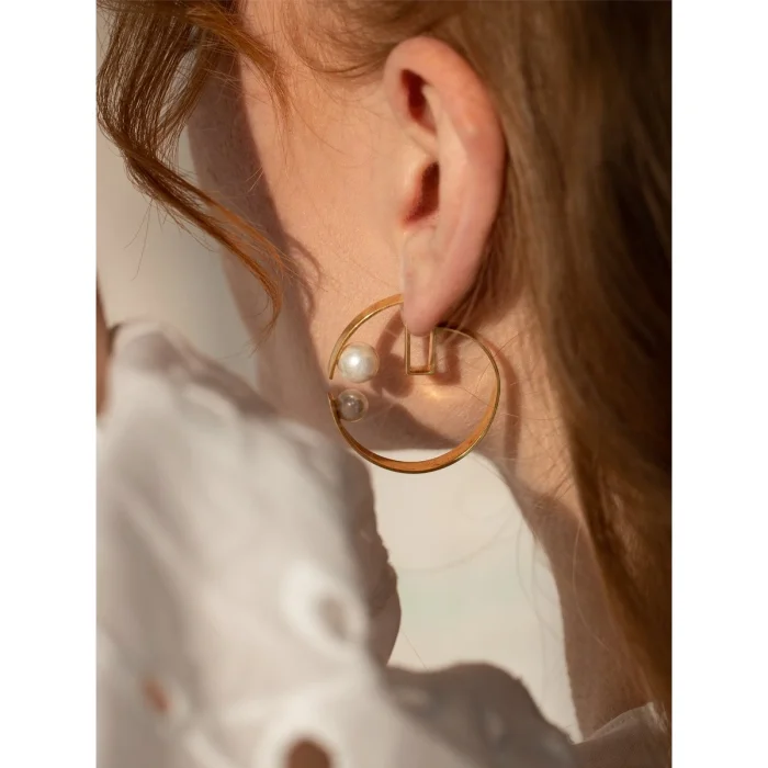İncili Mimari Küpe Özellikleri 925 ayar gümüş Ölçü: 3.5 cm x 3.5 cm Renk: Altın Gramaj: 11.52 gr Gerçek incilerle üretilmiştir. Pimli bir küpedir.