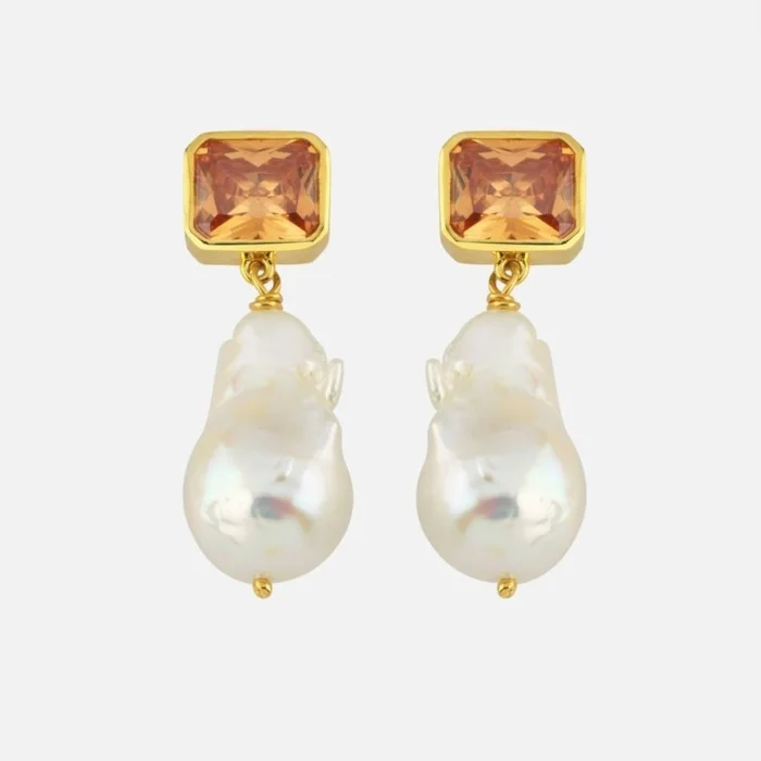 Ürün: Şampanya Kristal Taşlı Barok İnci Sallantılı Küpe