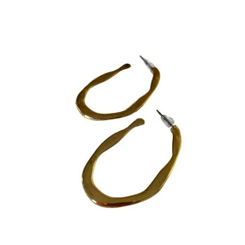 Küpenin kulağa giren çivisi çelik, geri kalan formu ise zamak ve üzeri altın kaplamadır.