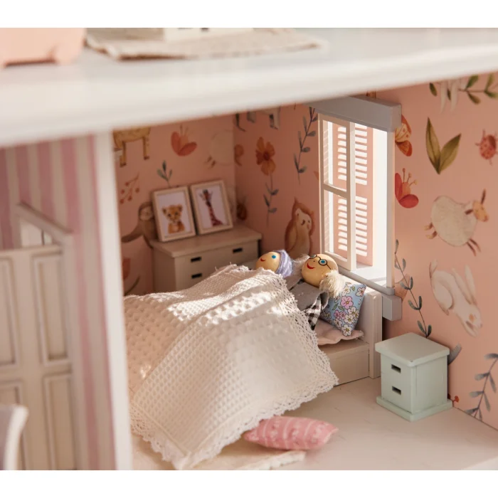 Pembe panjurları, çiçeklerle bezeli duvarları ve küçük kafesi ve fırınıyla bu ev, yalnızca bir oyuncak değil; çocuğunuzun hayallerinin her gün yeniden filizlendiği sahnedir.