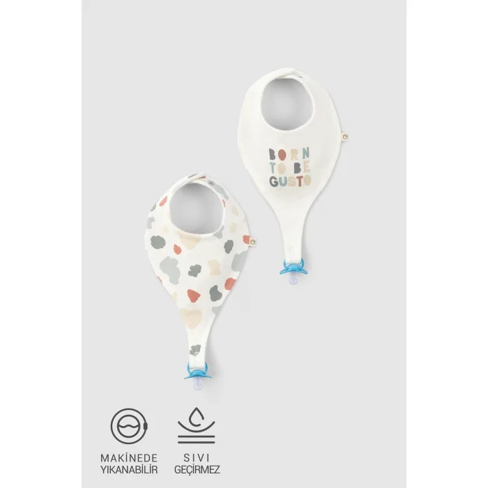 Ürün: 2'li Sıvı Geçirmez Organik Pamuk Emzik Tutucu Önlük Seti Animal Desenli