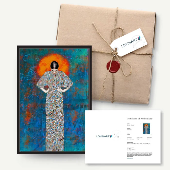Limitli edisyonlu bir sanat eseri, sanatçı imzası ve hangi adetli edisyonun kaçıncı kopyası olduğu üzerinde belirtilen 'Orijinallik Sertifikası' ile birlikte sanat alıcısına gönderilir. Ayrıca, hangi teknikle ve kalitede üretildiği, kullanılan fine art kağıdı dahil tüm baskı özellikleri sertifika üzerinde yer alır.