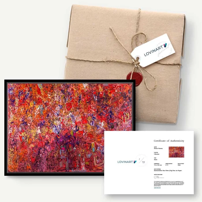 LİMİTLİ EDİSYON SANAT BASKILARI Edisyonlu sanat eseri, bir asıl eserin kopyalanmış veya bire bir yeniden üretilmiş versiyonu olarak tanımlanır. Limitli edisyonlarda üretim yapılırken eserin kaç edisyon olarak üretileceği, eser sahibi sanatçı gözetiminde önceden belirlenir ve eser bu adetten fazla üretilmez. ORİJİNALLİK SERTİFİKASI Limitli edisyonlu bir sanat eseri, sanatçı imzası ve hangi adetli edisyonun kaçıncı kopyası olduğu üzerinde belirtilen 'Orijinallik Sertifikası' ile birlikte sanat alıcısına gönderilir. Ayrıca, hangi teknikle ve kalitede üretildiği, kullanılan fine art kağıdı dahil tüm baskı özellikleri sertifika üzerinde yer alır. MÜZE KALİTESİNDE BASKILAR VE MODERN ÇERÇEVELEME SEÇENEKLERİ Dünya standartlarında baskı yapan makinelerle, yalnızca 200 gram Hahnemühle fine art kağıda, Giclée (püskürtme) tekniği kullanarak ürettiğimiz müze kalitesinde arşivsel pigment baskılar; normal oda şartlarında 100 yıldan fazla ömrü olan fine art baskılardır. Asitsiz ve %100 pamuk tabanlı, detay ve renklerde orijinal esere yakınlık bakımından mükemmel sonuç veren Hahnemühle fine art kağıtlar, solmaya karşı da garantilidir. Eserlerin rulo halinde yalnızca fine art baskılarını sipariş verebilir, ve hatta modern çerçeve alternatiflerimizden zevkine uygun olanı seçip, asılmaya hazır halde teslim alabilirsin. Tamamıyla el işçiliği ve titizlikle gerçekleştirdiğimiz çerçeveleme işlemini, uzun ömürlü, kaliteli malzemelerle yapıyoruz.