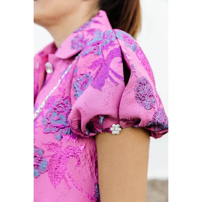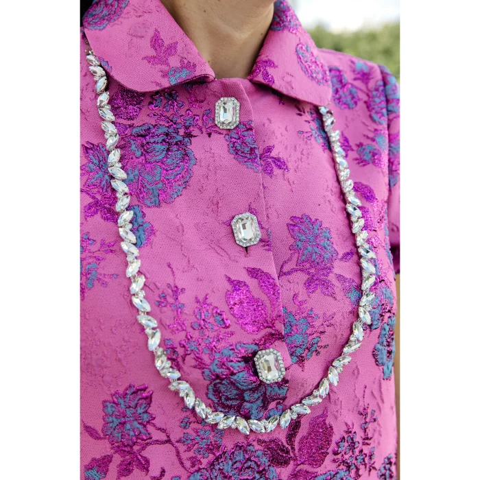 Elbisemiz brokar dokuma kumaş, içi tamamen astarlı. roba detaylı , önden düğmeli yakalı.
