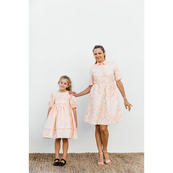 Elbisemiz saten üzeri dantel kaplı, içi tamamen astarlı, önden düğmeli ve yan fermuarlı.