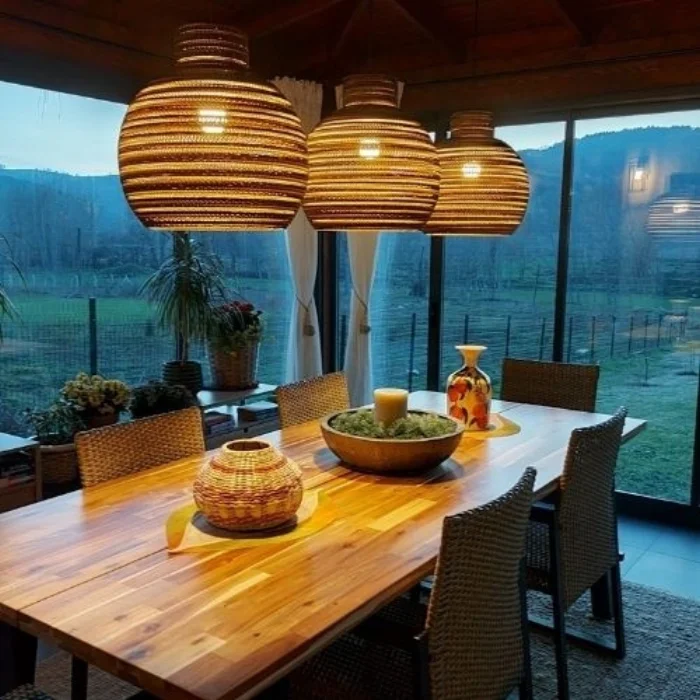 Oluklu mukavvadan üretilmiş el yapımı lambalarımız, dış mekan için uygun değildir.