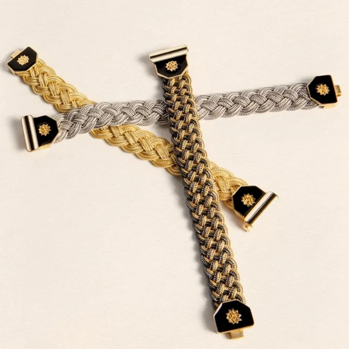 925 ayar gümüş, mineli, el yapımı örgü bilezik.