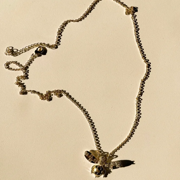Altın kaplamadır.Siyah ve beyaz renkli zirkon taşlarla detaylandırılmış Arı figürü kullanılmıştır.