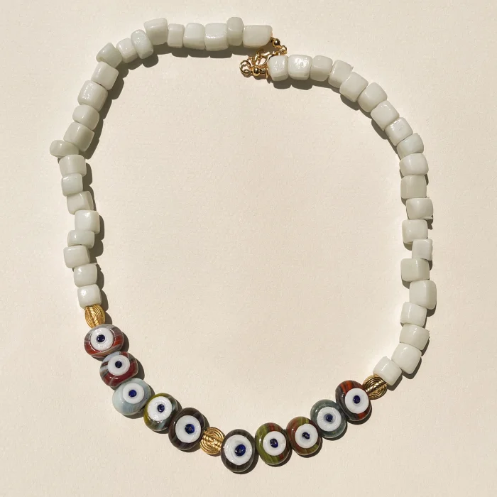 • Beyaz ve ebruli Bodrum boncuklarıyla tasarlanmıştır