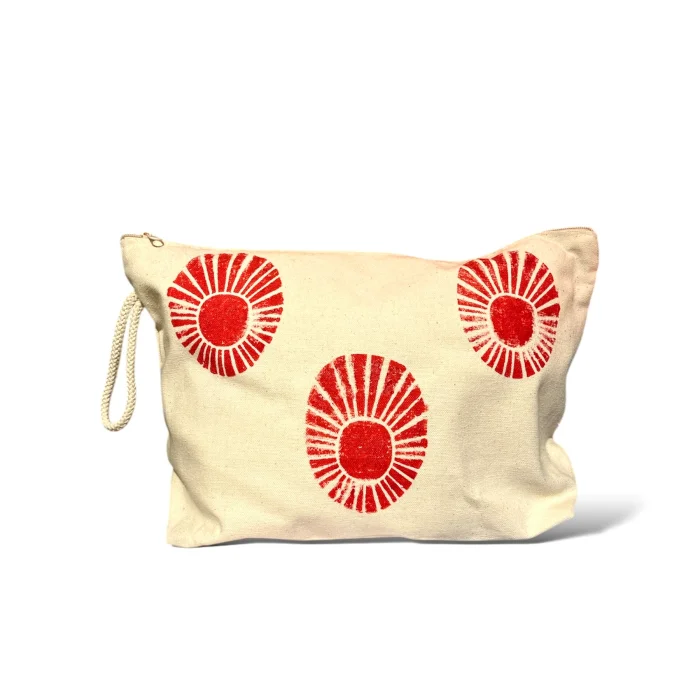 Her clutch, Akdeniz’den gelen premium kanvas kumaştan üretildi ve güneş ışığını andıran motiflerle tek tek elde basıldı. Hem sade hem cesur bir duruş sergileyen bu parçalar; Doğu ile Batı’nın, gelenek ile özgürlüğün uyumuna zarif bir övgü niteliğinde.