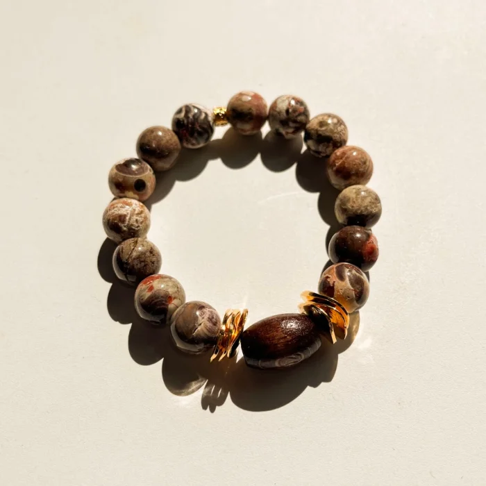 Akik doğal taş boncuklarımıza , ceviz renkli el oyması ahşap boncuk eşlik ediyor.