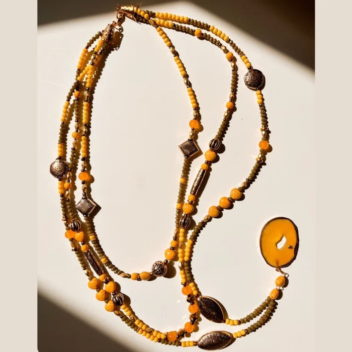 Doğal taş çeşitleri ve antik boncuklar.