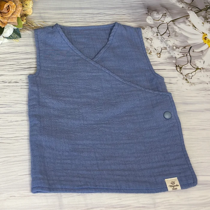 İçi ve dışı 2 katlı olmak üzere toplam 4 katlı müslinden ürettiğimiz bebek yeleğini sizlerle buluşturmaktan mutluluk duyuyoruz. Müslin yeleğimiz, yumuşacık kumaşı, hem içten hem dıştan ayarlanabilir çıt çıtı/ düğmeleri ile bebeklerinizi bir bulut yumuşaklığında saracak, nefes alan yapısı ile onları asla sıkmayacak, kış ve bahar aylarının vazgeçilmezi bir üründür.