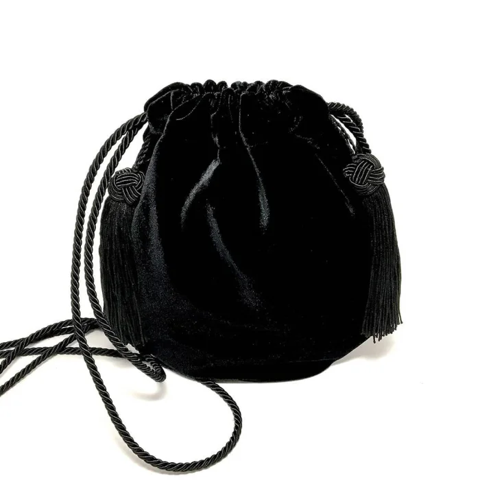 Siyah kordonet askılı, yan etiketli Yükseklik : 26cm. Genişlik : 26 cm. Askı boyu: 60 cm.