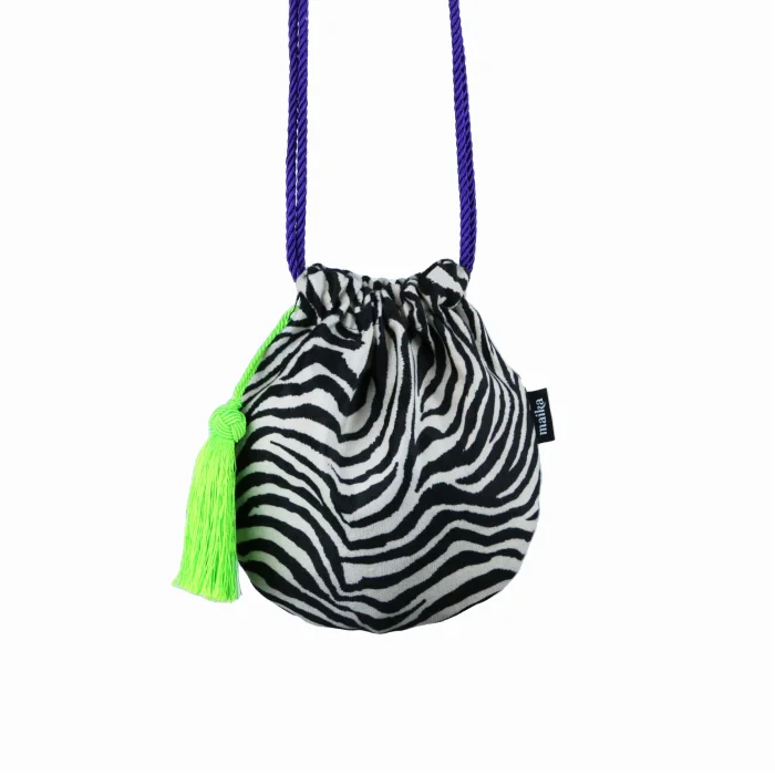 Neon Yeşil püskül detaylı, Koyu Mor renkte Kordonet askılı,