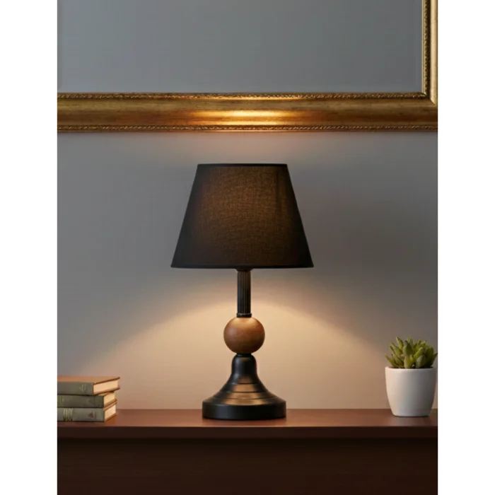Malzeme: Kumaş başlık, Masif ahşap detay, Metal gövde, Elektrostatik boya, E27 Duy (Ürüne ampül dahil değildir)