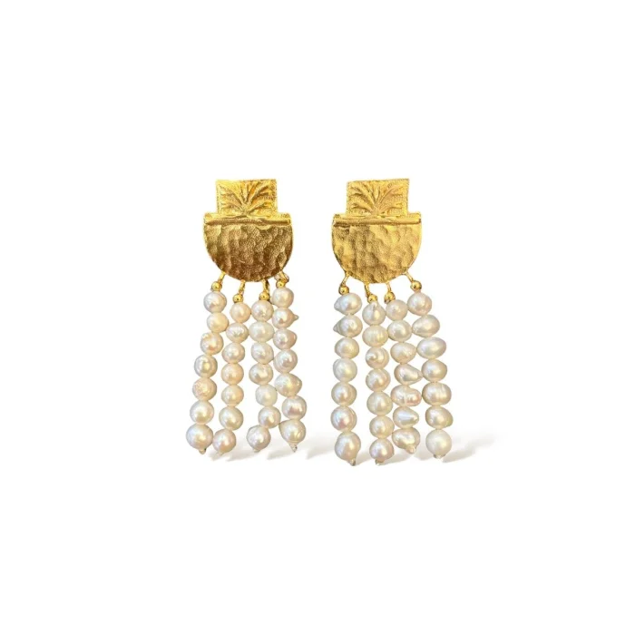 Majalis tarafından el işçiliği ile sınırlı sayıda üretilmektedir. Küpe de inci ve bronz üzeri altın kaplama kullanılmıştır. Ürün ölçüsü:5 cm