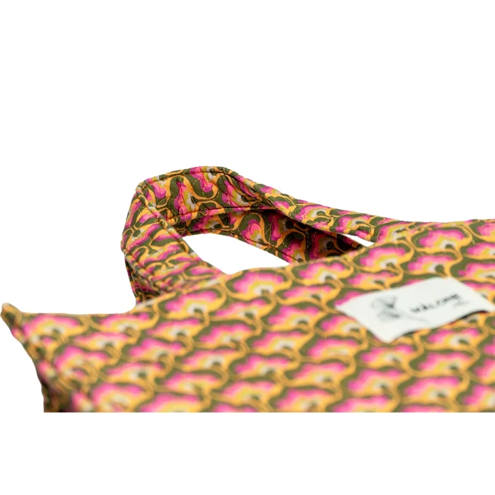 Günlük aktif yaşam için çok iyi bir destek çantadır. İster bütün ailenin ihtiyaçlarını isterseniz de kişisel gereksinimlerinizi bu çantayla kolaylıkla yanınızda taşıyabilirsiniz. Güçlendirilmiş sap ve dikiş detayı ile oldukça fazla eşya taşıyabilir. Hem içte hem dışta kullanılan kapitone deseni bu çantanın en eşsiz özelliğidir. Ölçüler: 45x30x11cm, 55cm askı uzunluğu İçerik: 100% Pamuk Dış Katman, geri dönüştürülmüş polyester dolgu ve iç katman Bakım: Soğuk su ve sabunla elde yıkama tavsiye edilir, gerektiğinde çamaşır makinasında hassas yıkama yapılabilir.