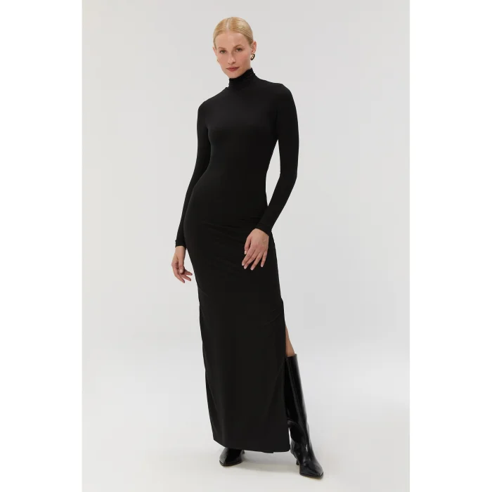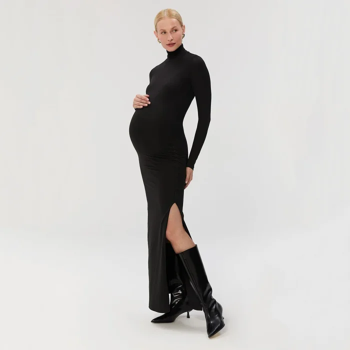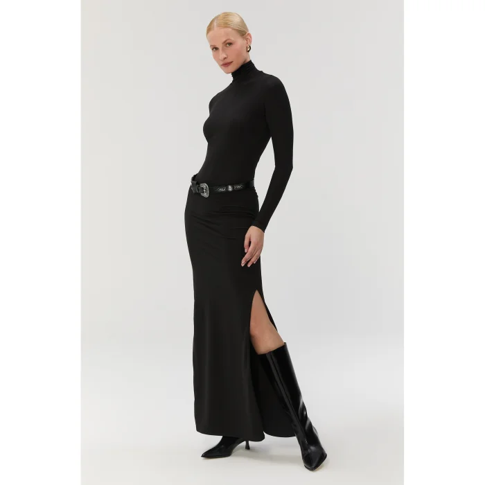 Özel çift kat kumaş yapısı, rahat bir toparlayıcılık sağlarken, hatları doğal bir şekilde destekler. Hamilelik sürecinde ve sonrasında rahatlıkla kullanılabilir. Yumuşak ve hassas dokulu kumaşı nedeniyle nazik bakım gerektirir. Derin yırtmaç detayı sayesinde rahat hareket imkanı sağlar. Model: 178 cm, üzerindeki beden: S Göğüs 80 / Bel 60 / Basen 93