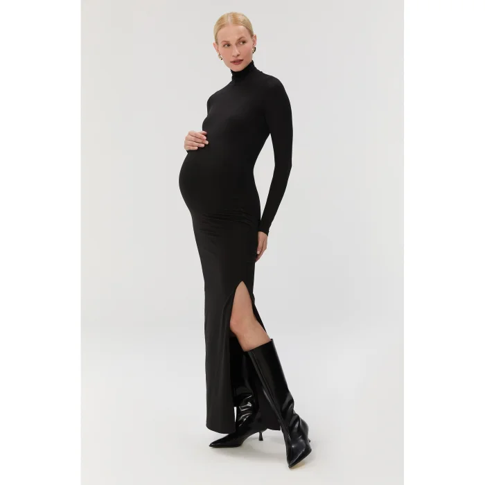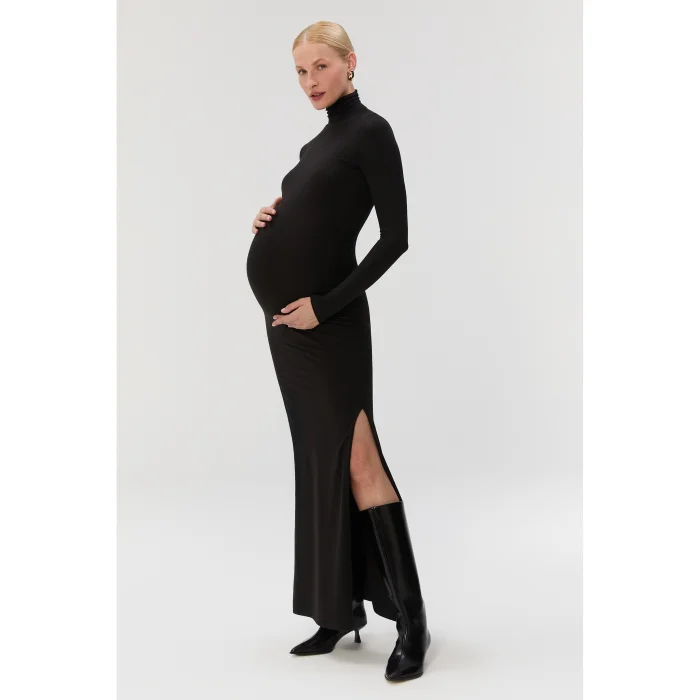 Özel çift kat kumaş yapısı, rahat bir toparlayıcılık sağlarken, hatları doğal bir şekilde destekler. Hamilelik sürecinde ve sonrasında rahatlıkla kullanılabilir. Yumuşak ve hassas dokulu kumaşı nedeniyle nazik bakım gerektirir. Derin yırtmaç detayı sayesinde rahat hareket imkanı sağlar. Model: 178 cm, üzerindeki beden: S Göğüs 80 / Bel 60 / Basen 93