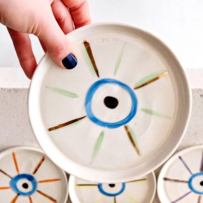 Ürün: Nazar Boncuğu Desenli Altın Dekorlu Stoneware Tatlı Tabağı