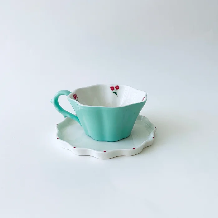Ürün: Fine Flower Yonca El Yapımı Porselen Türk Kahvesi Fincanı-turkuaz
