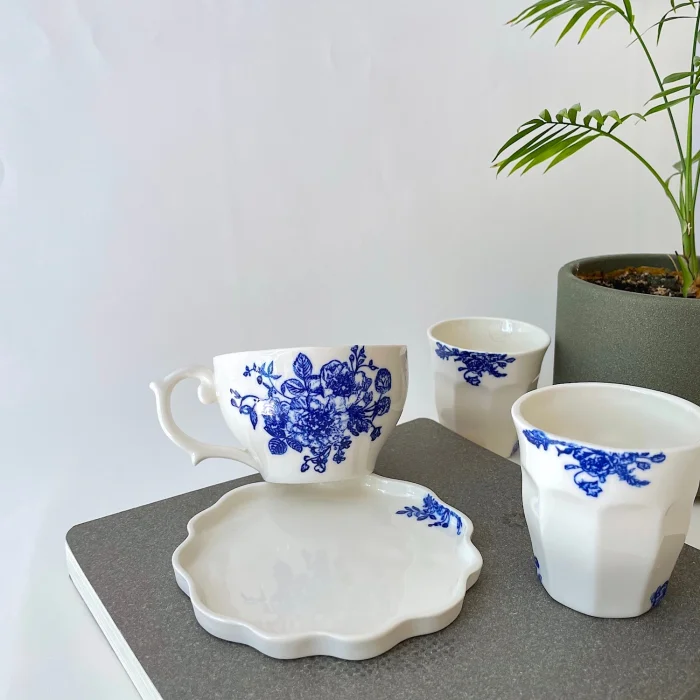 El yapımı porselen fincan takımı, gıdaya uygun sırlar kullanılarak üretilmiştir.