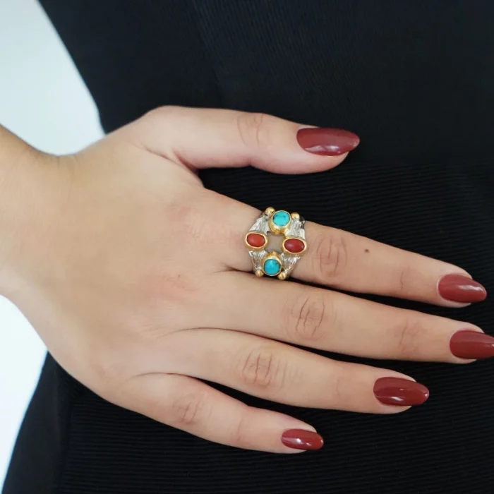 Gümüş Yüzük | Mercan & Turkuaz Taşı