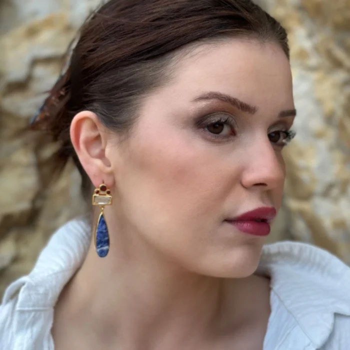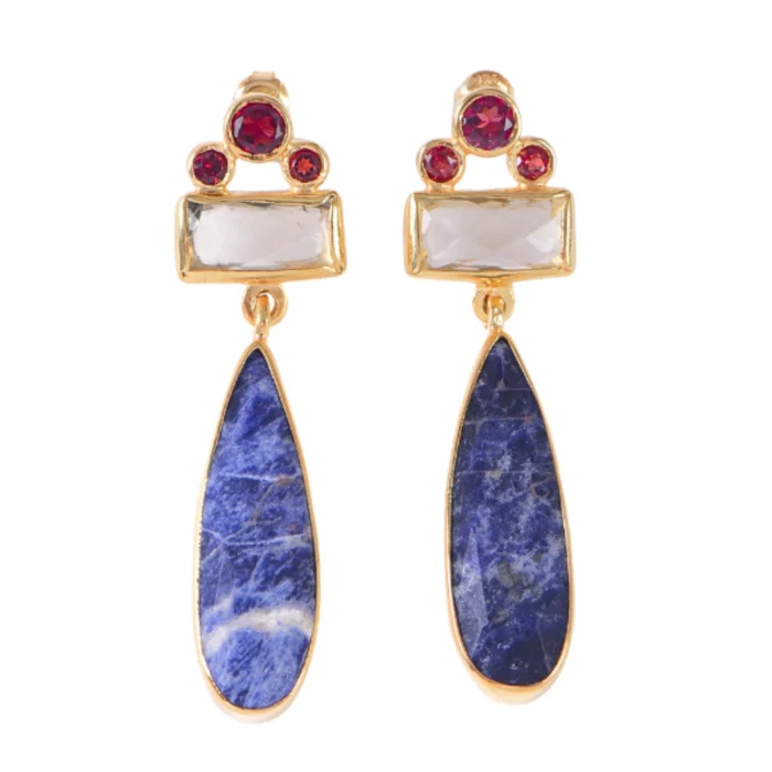 Gümüş Küpe | Lapis Lazuli & Sitrin & Garnet