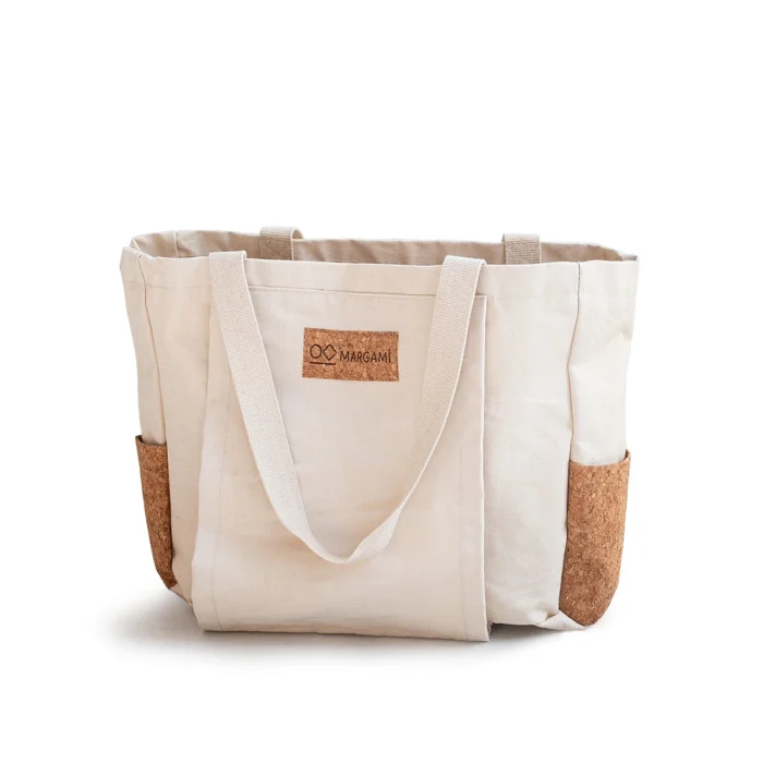 Tote Çanta / Yoga Matı Çantası, kişisel eşyalarınızı ve yoga / pilates matı taşımak için idealdir. Margami Tote Çanta / Yoga Matı Çantası şık ve kolay taşınabilir, %100 doğal bir çanta olup, size geniş hacimli bir taşıma alanı sunar. Yoga matını ön cepte, blok, tekerlek, yoga aksesuarları, kıyafet ve bilgisayarınızı geniş iç hacimde taşıyın, telefon ve su şişenizi mantar yan ceplere yerleştirin. Boyut: 50 cm x 33 x 15 cm