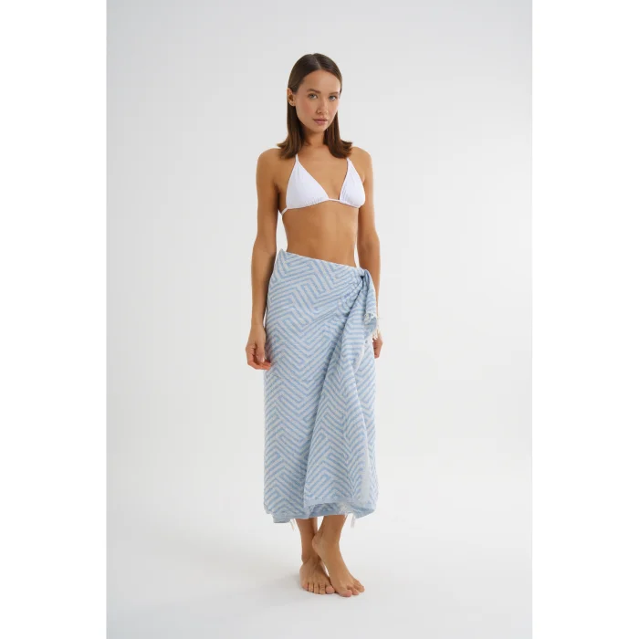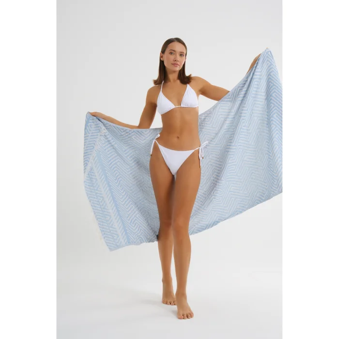 %100 pamuk, jakarlı, 325 gr.,100x180 ebatında, siyah&beyaz, çift taraflı, plaj havlusu, peştemal. Denizli'de üretilmiştir.