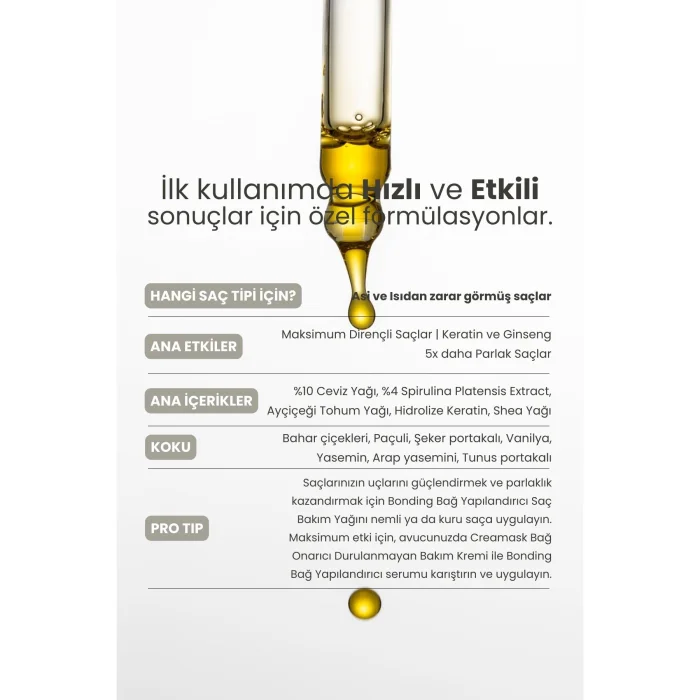 Ürün: Kabarıklık Karşıtı, Bağ Onarıcı, Güçlendirici Bonding Bağ Yapılandırıcı Saç Bakım Saç Serumu 50 Ml