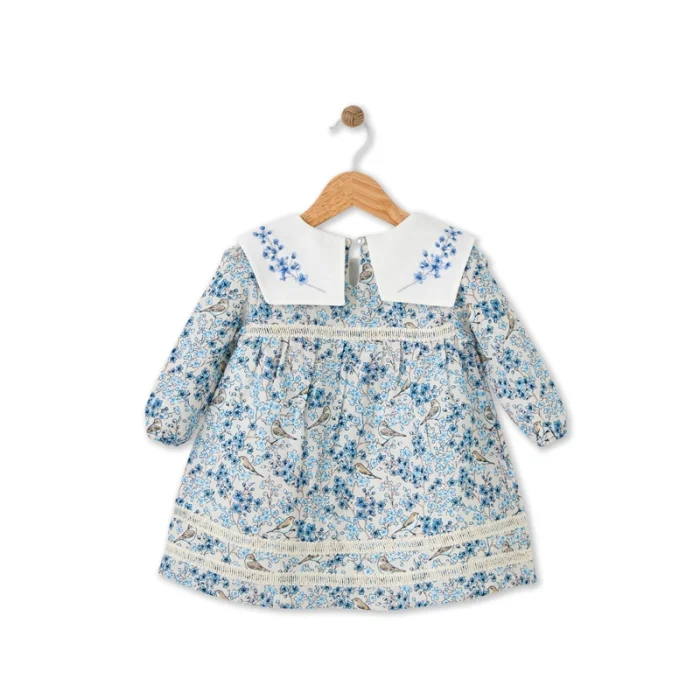 Ürün: Bloomy Spring Desenli Uzun Kollu Motif İşlemeli Elbise
