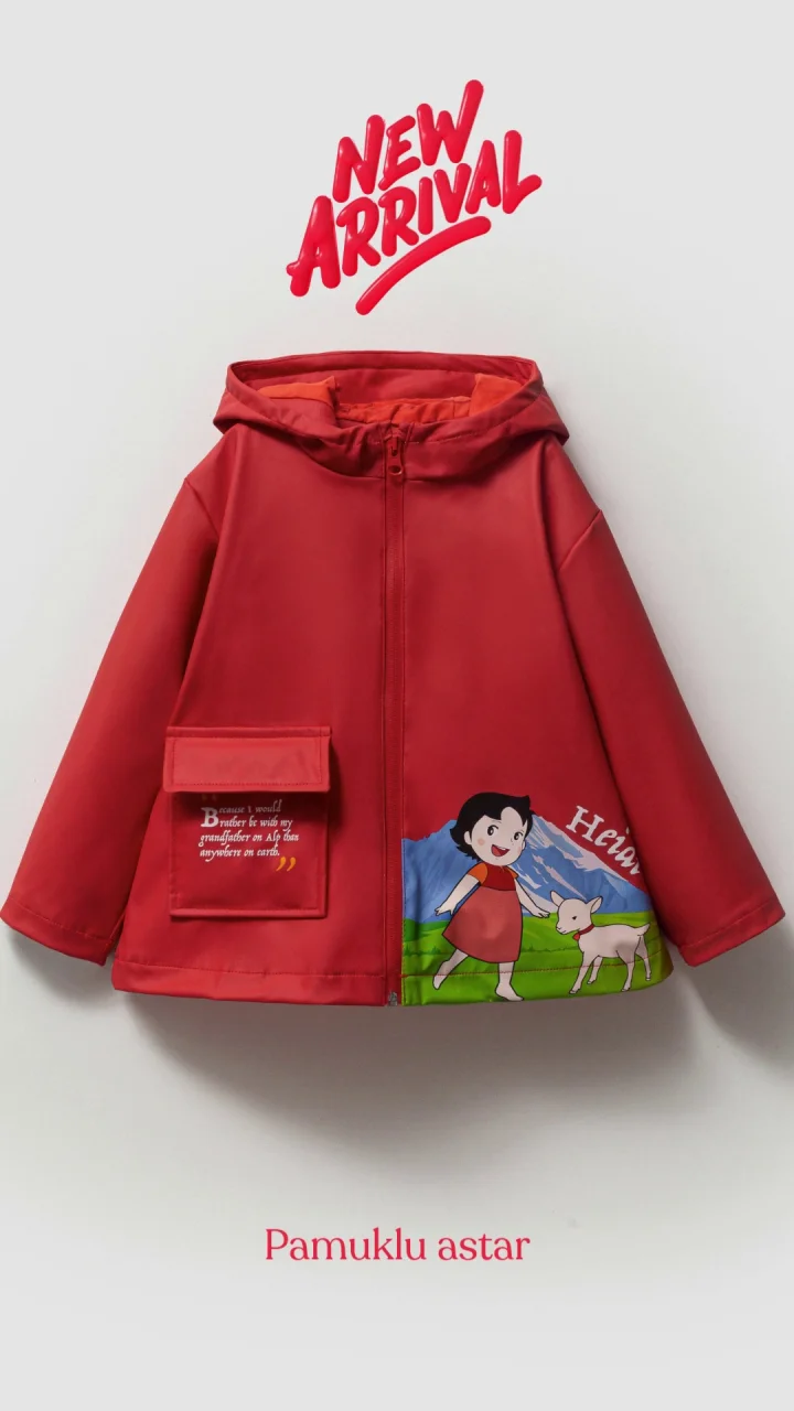 - Tasarım Detayları: Ön yüzeyde Heidi görsel baskısı, arka yüzeyde 'we love rain' yazı baskısı
