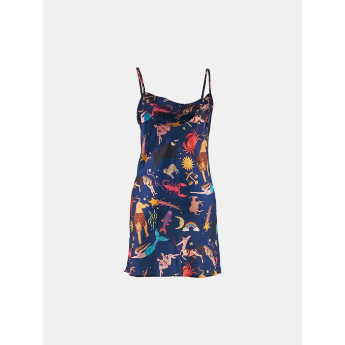 Ürün: Saten Askılı Elbise Gecelik Star Sign Desen