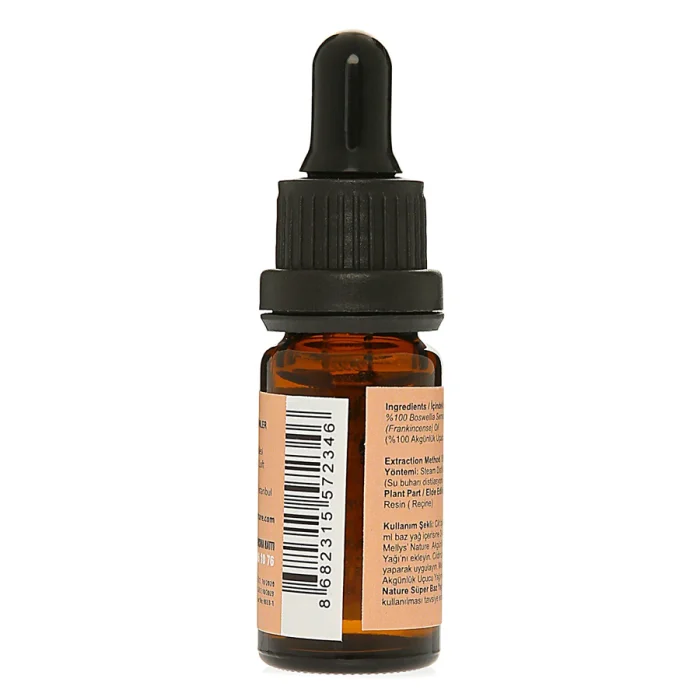 Kullanım Şekli: Haricen kullanım içindir. 5 damla Mellys’ Nature Akgünlük Uçucu Yağının, 10 ml Mellys’ Nature Super Base Oil (Süper Baz Yağ) karışımı ile birlikte kullanılması tavsiye edilir.
