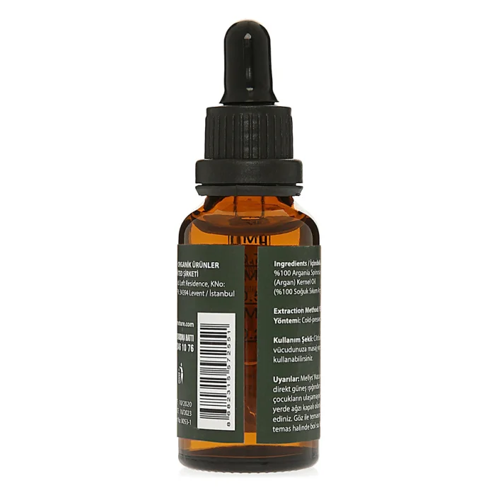 Kullanım Şekli: Cilt bakımı için, temizlenmiş cilde yeterli miktarda yağı masaj yaparak uygulayınız. Saç bakımı için, temiz saça yeterli miktarda yağı uygulayınız. Uyarılar: Mellys’ Nature Argan yağını direkt güneş ışığından uzakta, serin ve çocukların ulaşamayacağı bir yerde ağzı kapalı şekilde muhafaza ediniz. Göz ile temasından kaçınınız, temas halinde bol su ile yıkayınız.